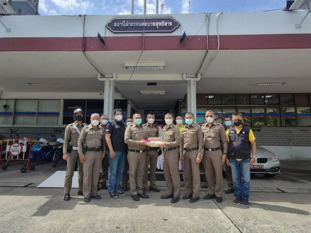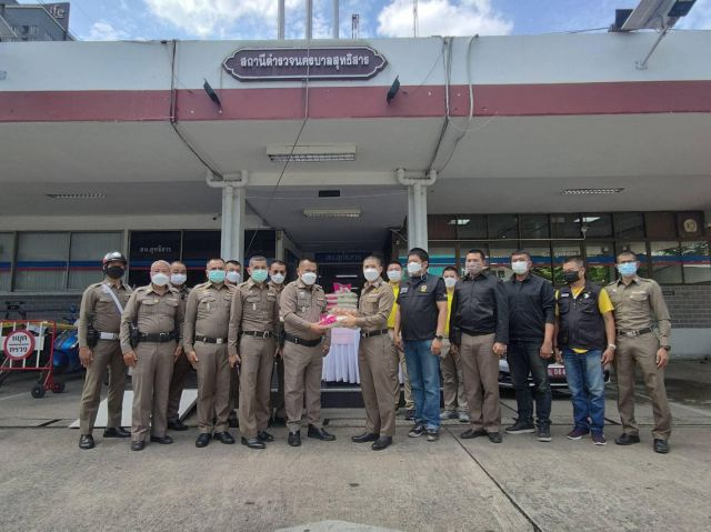 พ.ต.อ.สุธิศักดิ์ พิริยะภิญโญ ผกก.สน.สุทธิสาร ได้มอบไข่ไก่สดจำนวน 2,000 ฟอง และ เป็นตัวแทนมอบข้าวสาร ข้าวหอมมะลิอย่างดี จำนวน 200 ถุง ซึ่งได้รับการสนับสนุนจาก คุณมัทนา มูลจันทร์ กต.ตร.สน.สุทธิสาร/ DTL Law Office Co., LTD โดยมีผู้บังคับบัญชา หน.งานแต่ละฝ่ายเป็นตัวแทนรับมอบ